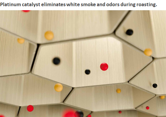 The system adopted a metal honeycomb (MH) structure coated with a platinum catalyst, which deodorizes and eliminates volatile organic compounds (VOCs) and hydrocarbon-based odors at low temperatures (200–400 degC).