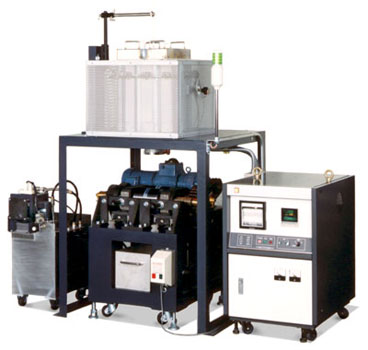 本装置は、炉底昇降式で炉材にアルミナファイバーボードを使用したものと、耐火物仕様の2機種が有ります。アルミナファイバーボードを使用したものは、前面扉付のため溶融ルツボは前面からも取り出し可能です。オプション仕様等の追加で、試料攪拌を行ない炉底よりガラスを流出させ粉砕機に流し込む事や、型流し等の一連の作業が出来ます。